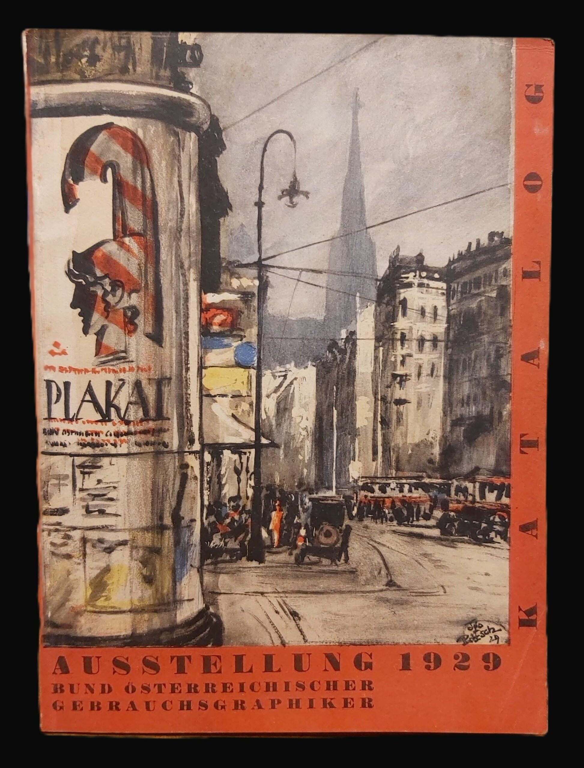 in-8, pp. 25, (30), bross. edit. con bella cop. litogr. a colori di Igo Pötsch. Con tavv. che riproducono le opere e pagine di pubblicità al fine. Catalogo non comune della mostra di manifesti austriaci che si svolse a Vienna nel 1929. Ottimo stato di conservaz. [546]