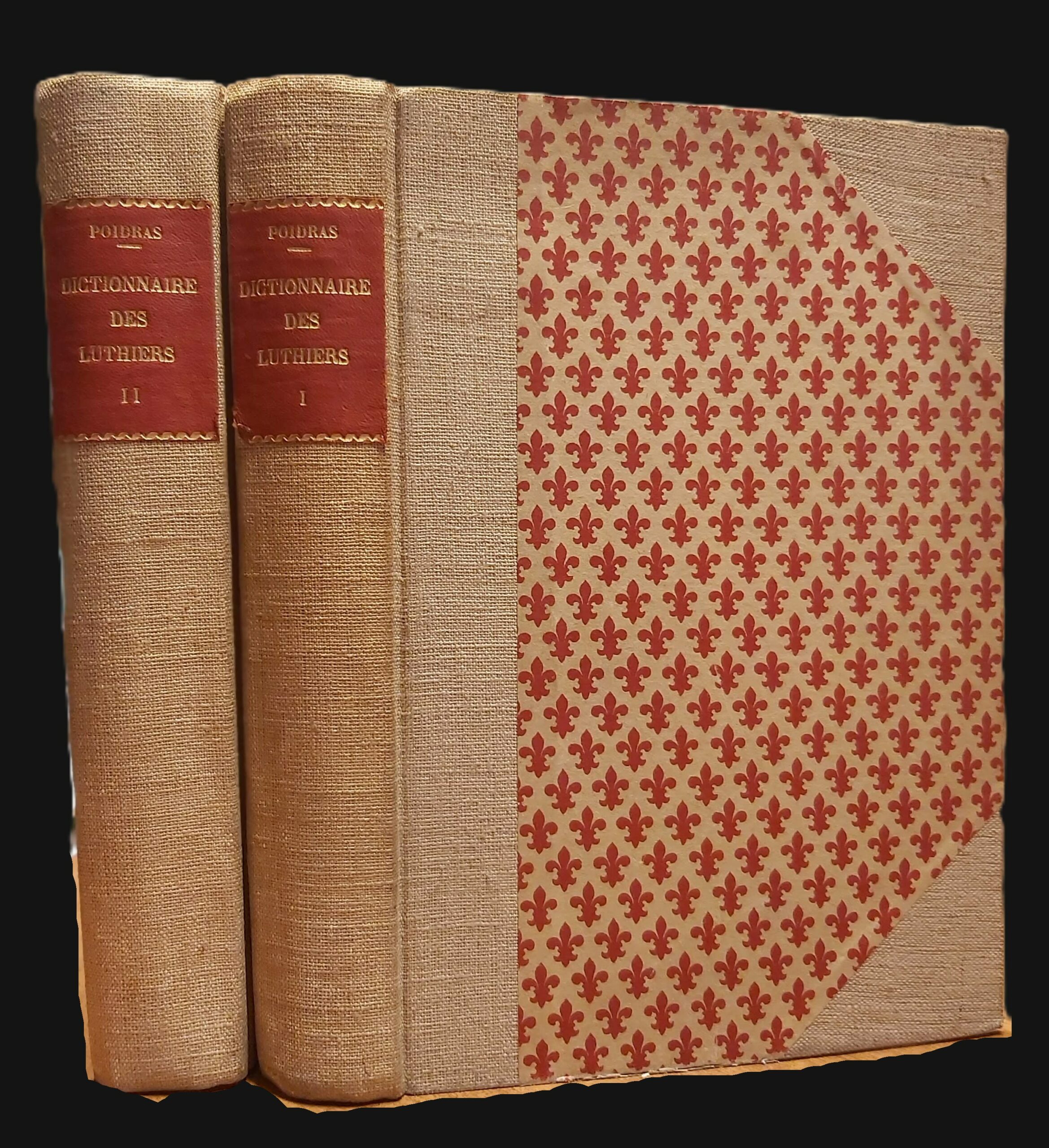 2 voll. in-4, pp. XIV, 272, (4); 280, (6), rileg. coeva m. tela con tass. in pelle ai d., angoli, piatti in cart. dec. Con 66 tavv. f.t. al primo vol., e 82 al secondo. Ampi indici. Importante opera su liutai e violini, suddivisi e studiati per scuole. Dettagliati indici riportano i nomi dei liutati, bibliografie di riferimento, maestri e città, copisti, facsimili di etichette. Seconda edizione. [824]