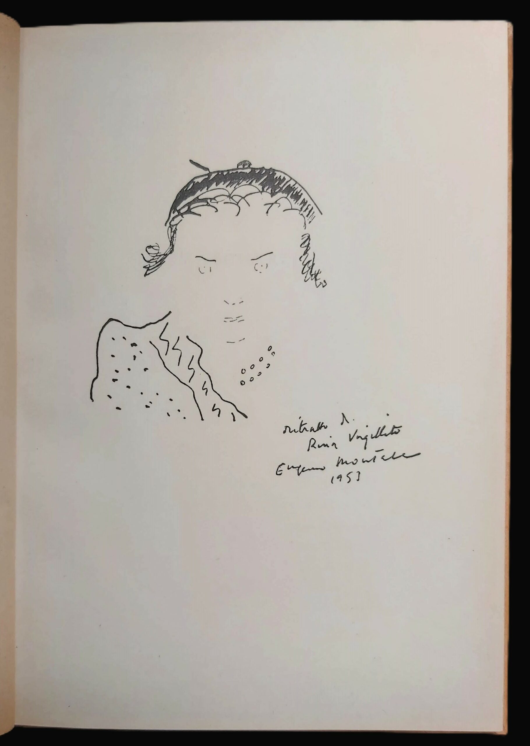 in-16, pp. 59, (4), leg. cart. edit. con tit. al d. Illustrazione litogr. al front. di Mario Logli. Con una tav. f.t. protetta da velina con il ritr. della poetessa firmato da Eugenio Montale. Raffinata prima ediz. delle poesie di Rina Sara Virgillito (Milano 1916 – Bergamo 1996), amica di Montale cui nel 1946 dedica un saggio “La luce di Montale”: fu proprio il poeta ad incoraggiarla a pubblicare questa sua prima raccolta di versi cui rese omaggio con un piccolo ritratto a penna. Tiratura di 150 esempl. numerati (ns nr.93) su carta “tipo Offset” di Fabriano. Raro. Perfetto. [452]