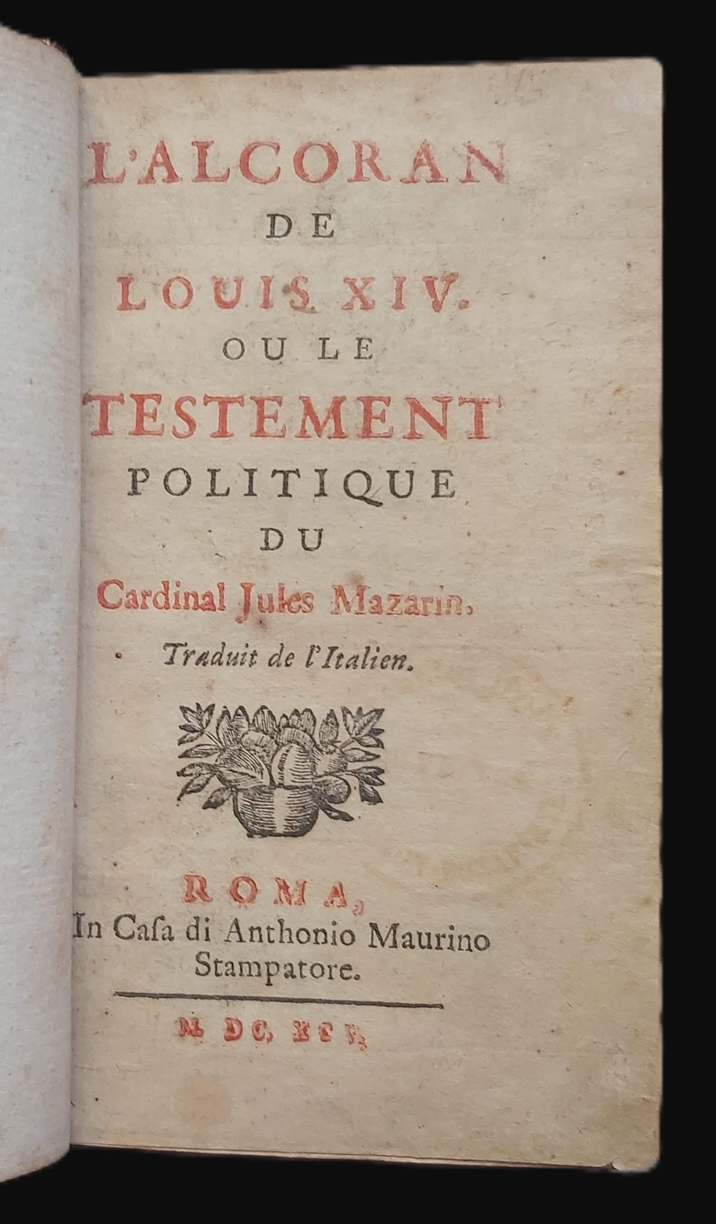 L’ALCORAN de Louis XIV ou le Testement politique du Cardinal Jules Mazarin. Traduit de l’italien.