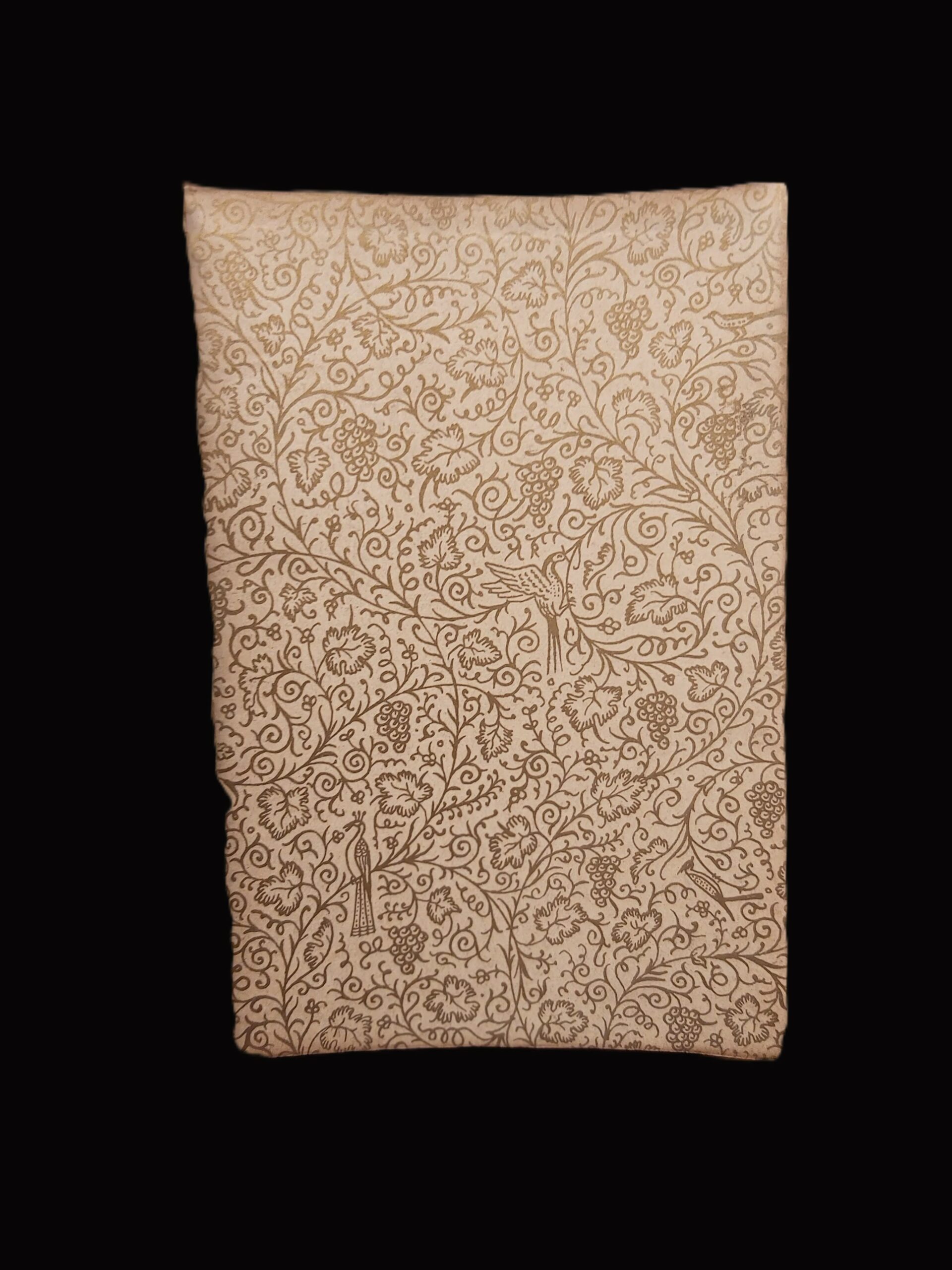 in-16, pp. XI, 84, (6), 1 cb, bella leg. pelle edit. con decorazione a secco ai piatti e tit. oro al d. Risguardi in carta dorata. Conservate le copertine originali. Front. a due colori con fregio. Bella tav. cromolitogr. in antip. con miniatura indiana di P. Zencker. Testo contornato da fregio in rosso e picc. incis. n.t. Elegante edizione della collana “Ex Oriente Lux”. Lievi abrasioni al d. [571]
